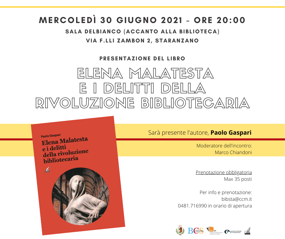 Mercoledì 30 giugno, alle ore 20 in sala Delbianco, ospiteremo Paolo Gaspari, autore del libro “Elena Malatesta e la rivoluzione bibliotecaria”, primo romanzo giallo del famoso editore, storico e sociologo udinese, d’adozione.